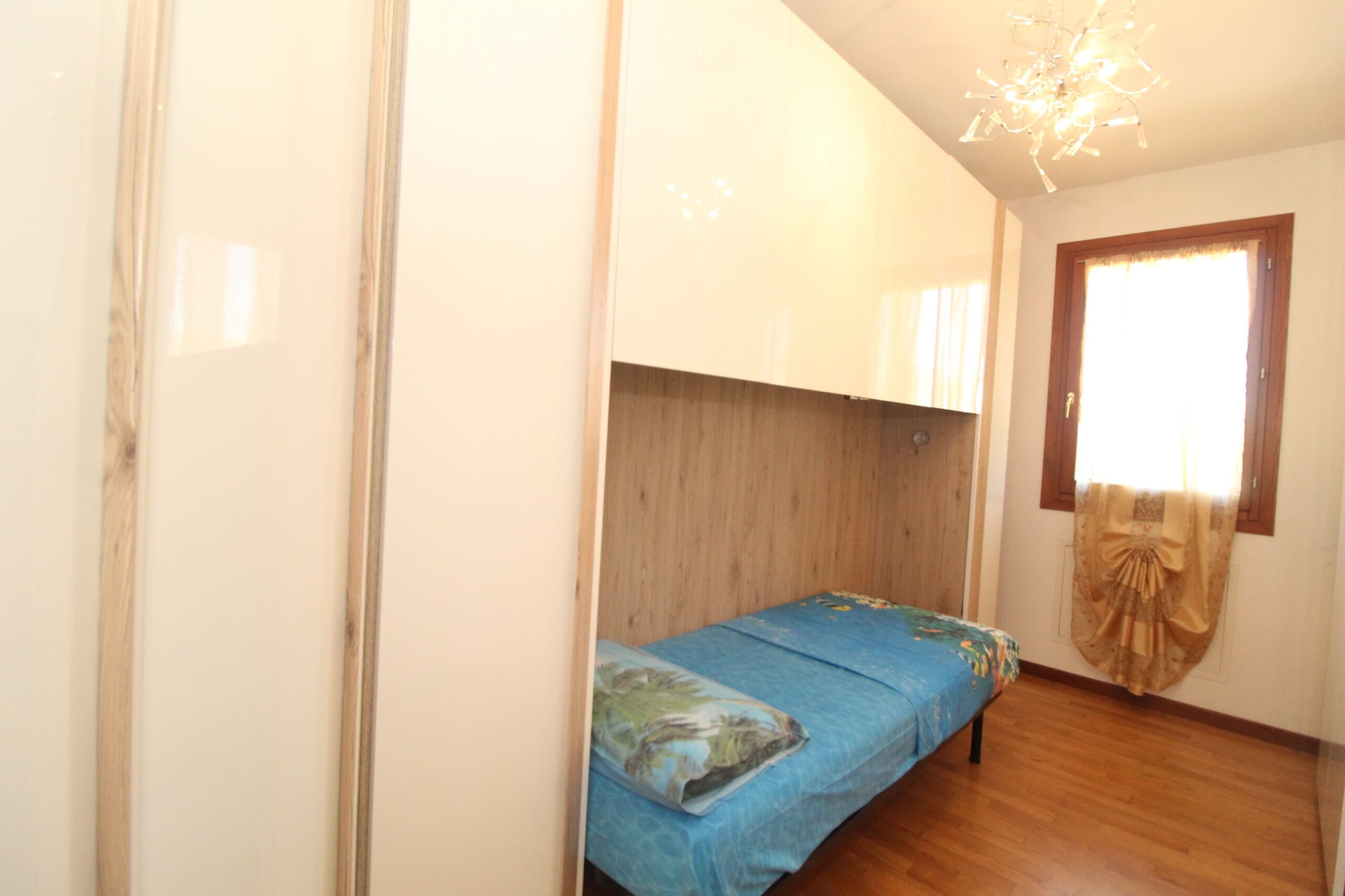 La zona notte ospita due camere da letto, una matrimoniale e una singola, e due bagni, di cui uno in suite, pensati per garantire praticità e riservatezza. Completa la zona notte un ulteriore terrazzo, ideale come spazio esterno aggiuntivo.
