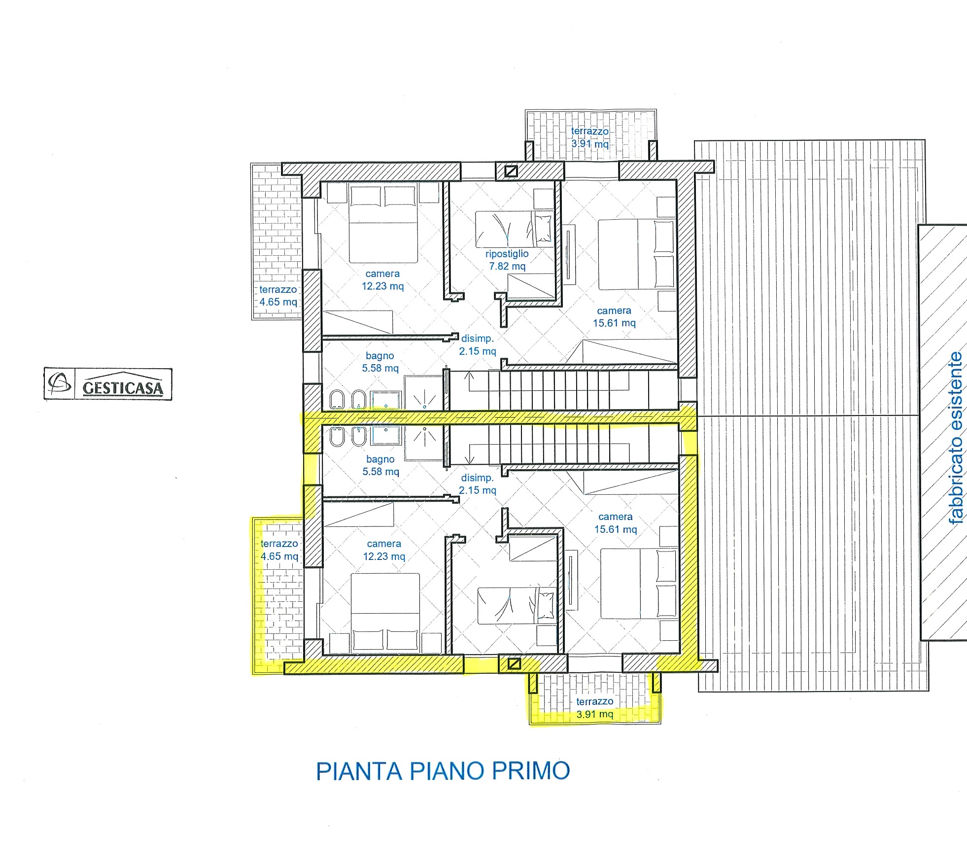 Al piano primo sono presenti tre camere da letto e un secondo bagno.