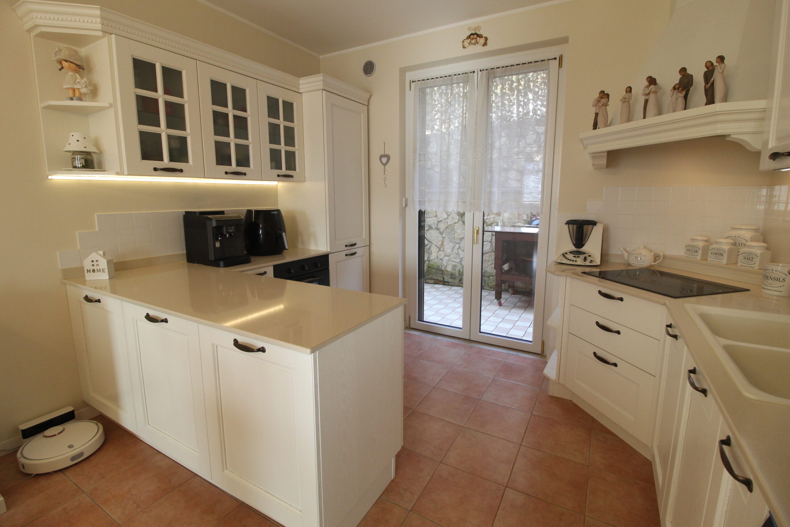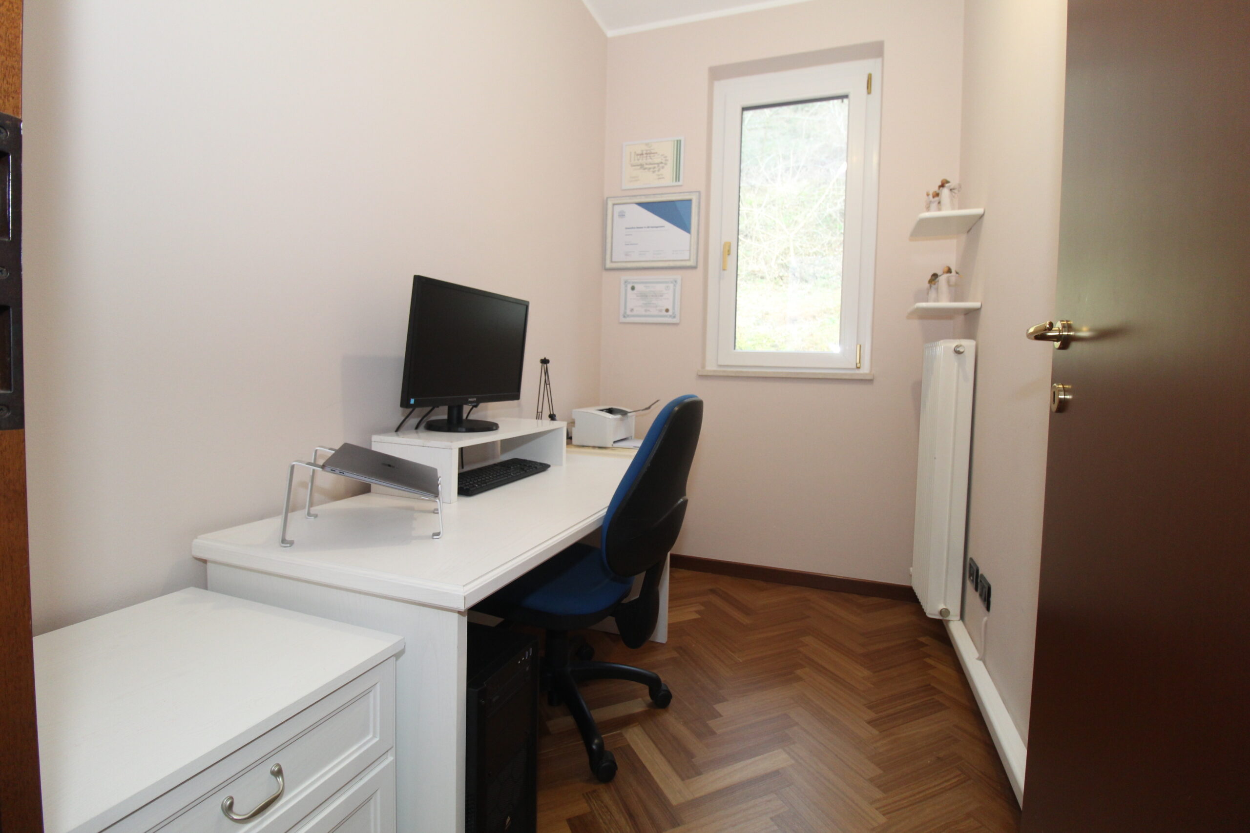 Al piano superiore troviamo una spaziosa camera matrimoniale, una camera doppia con terrazzo e un studio/cameretta, il secondo servizio rimodernato.
