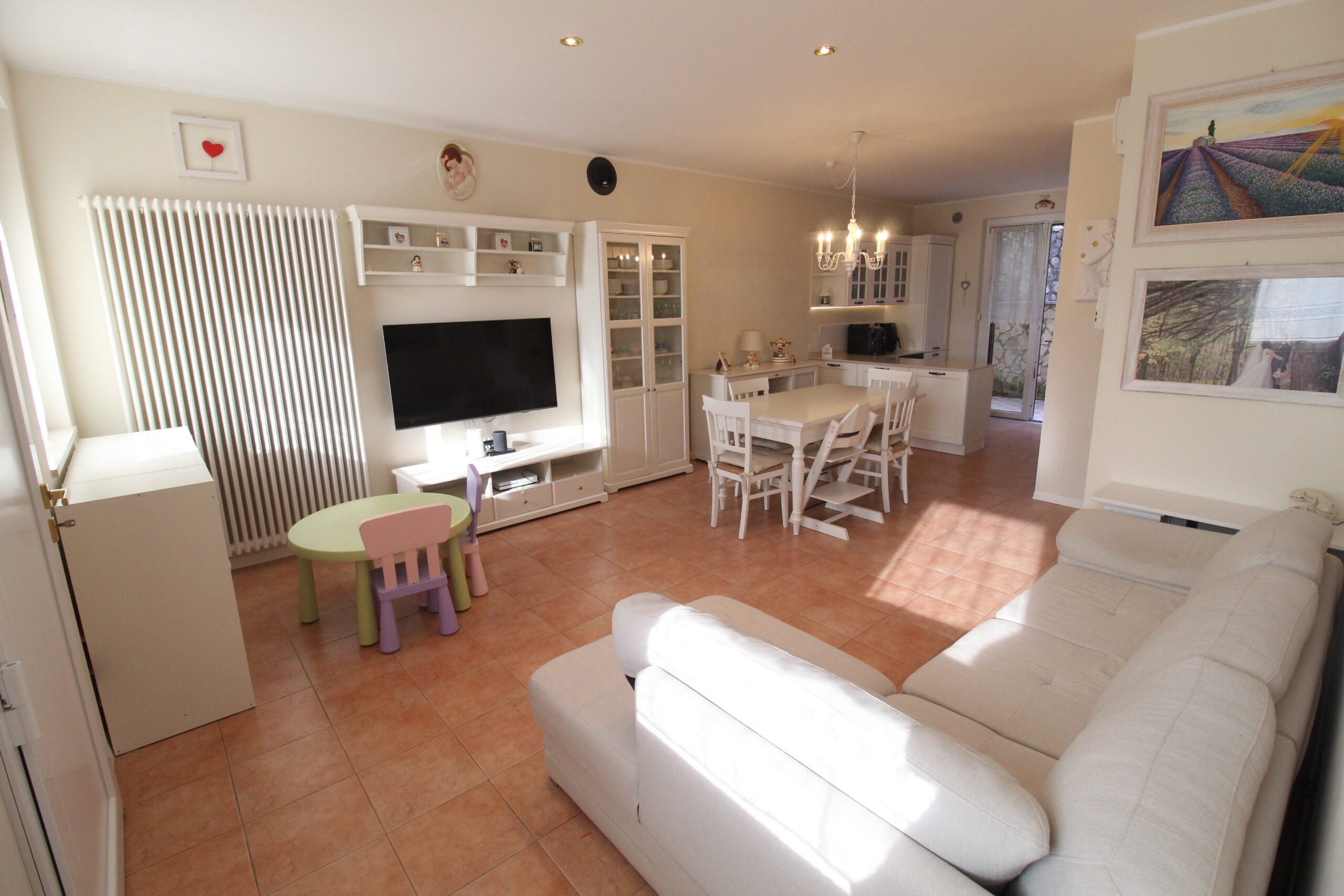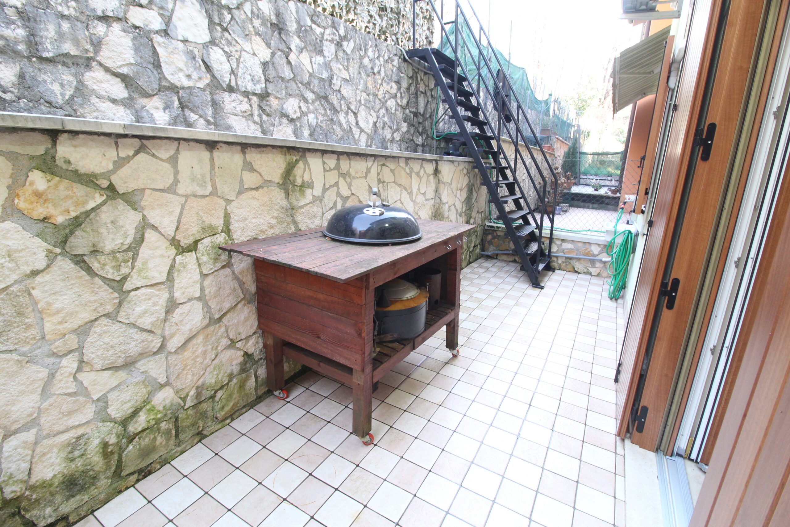 Un luminoso e accogliente reparto living caratterizza il piano principale dell’immobile, completato da un servizio – lavanderia e affacciato alla terrazza esterna e al giardinetto accessibile tramite una scala esterna.