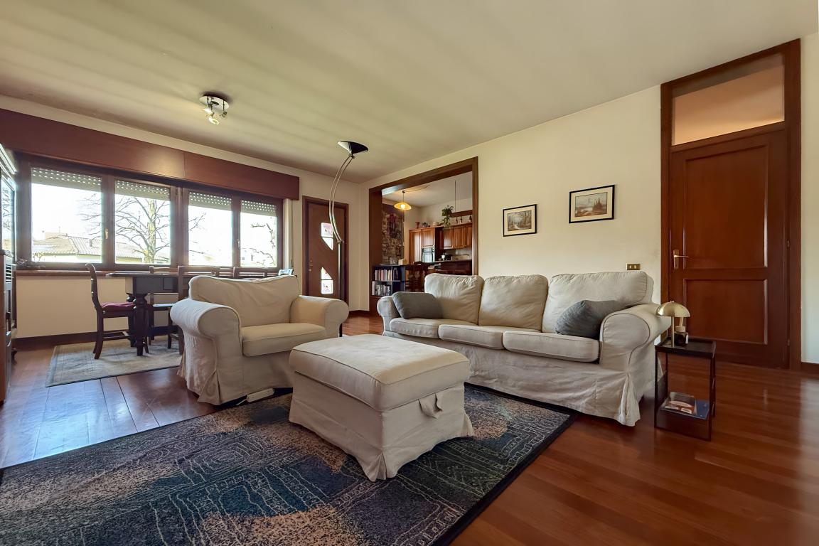 L’immobile, edificato negli anni ’90, spicca per le abbondanti metrature che caratterizzavano gli edifici di quel periodo. Lo spazio abitativo si sviluppa principalmente al piano terra, mentre al piano interrato troviamo le pertinenze (garage) e i locali di servizio (stireria, lavanderia, cantina e taverna). L’abitazione dispone anche di un ulteriore piano, attualmente allo stato grezzo, dove poter ricavare delle camere.