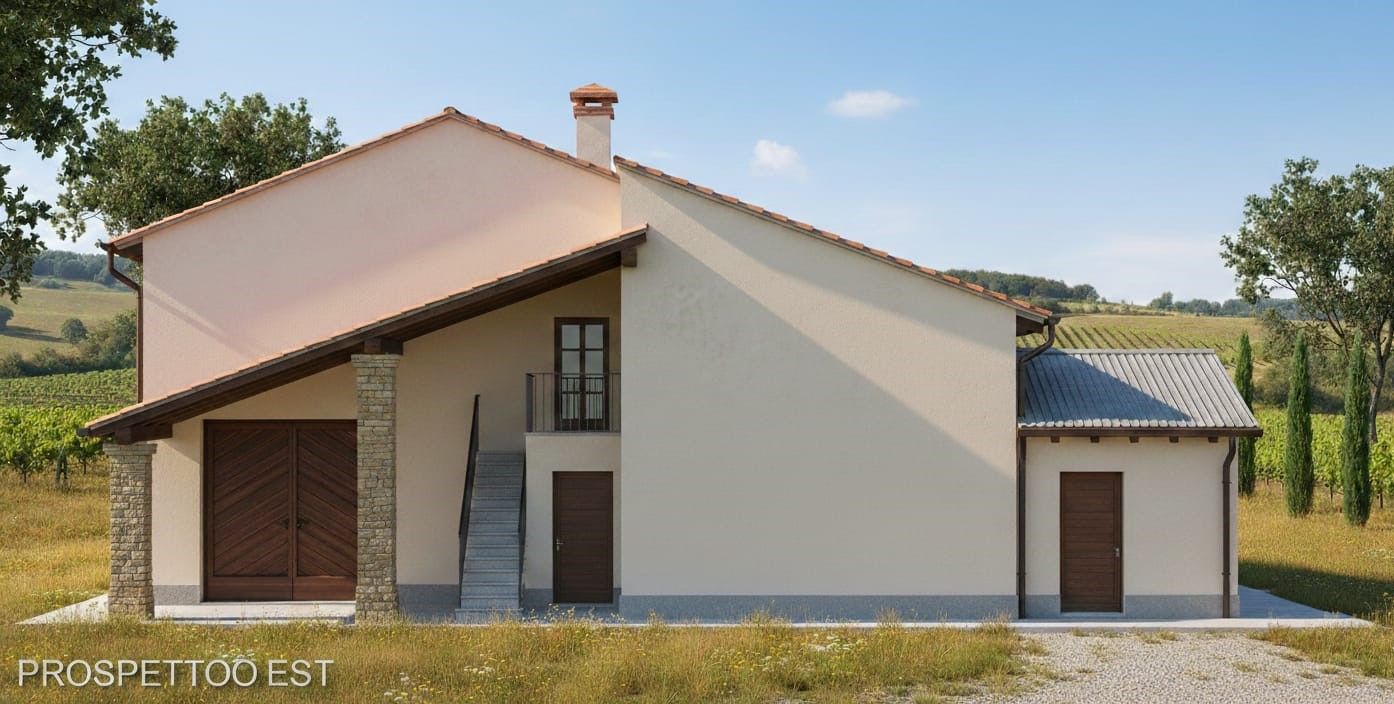 Adiacente alla casa, grande porticato a tutta altezza (ex fienile), perfetto per garage e spazi personalizzabili: studio, palestra, area hobby o guardaroba.