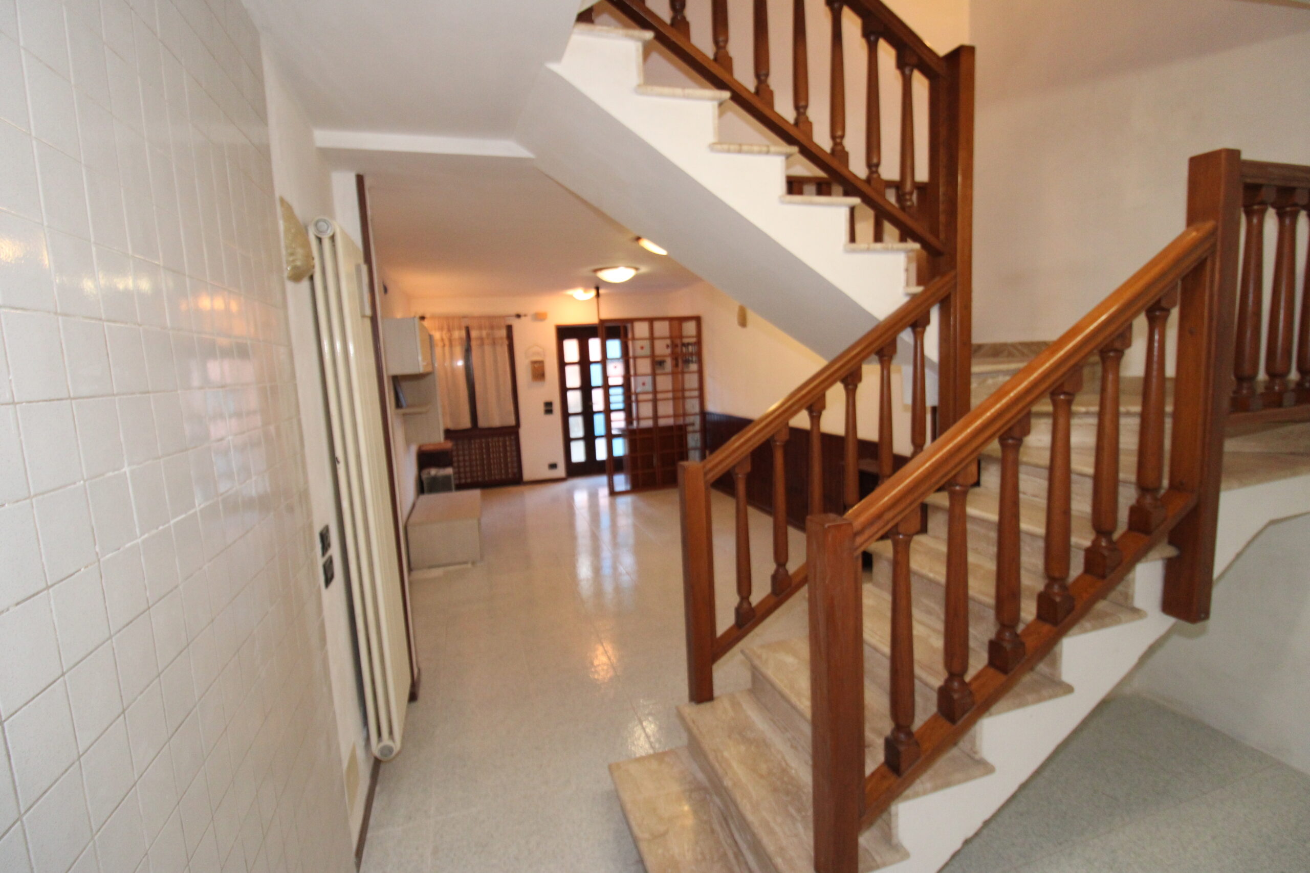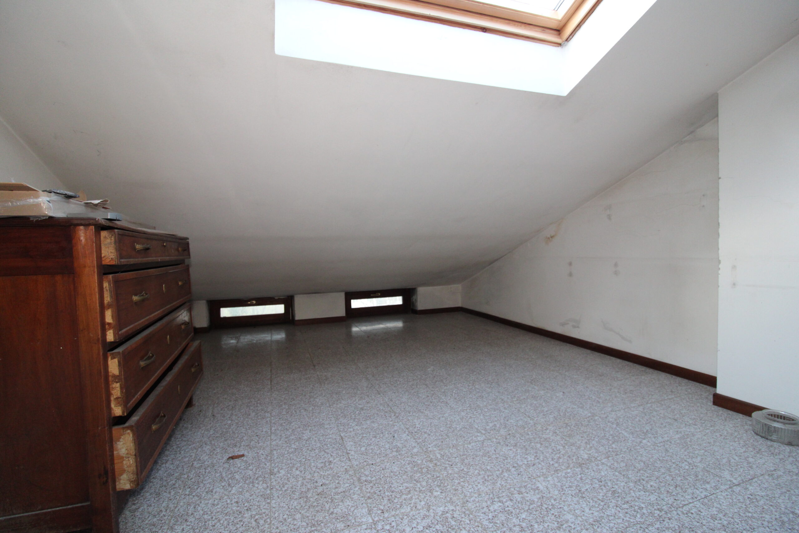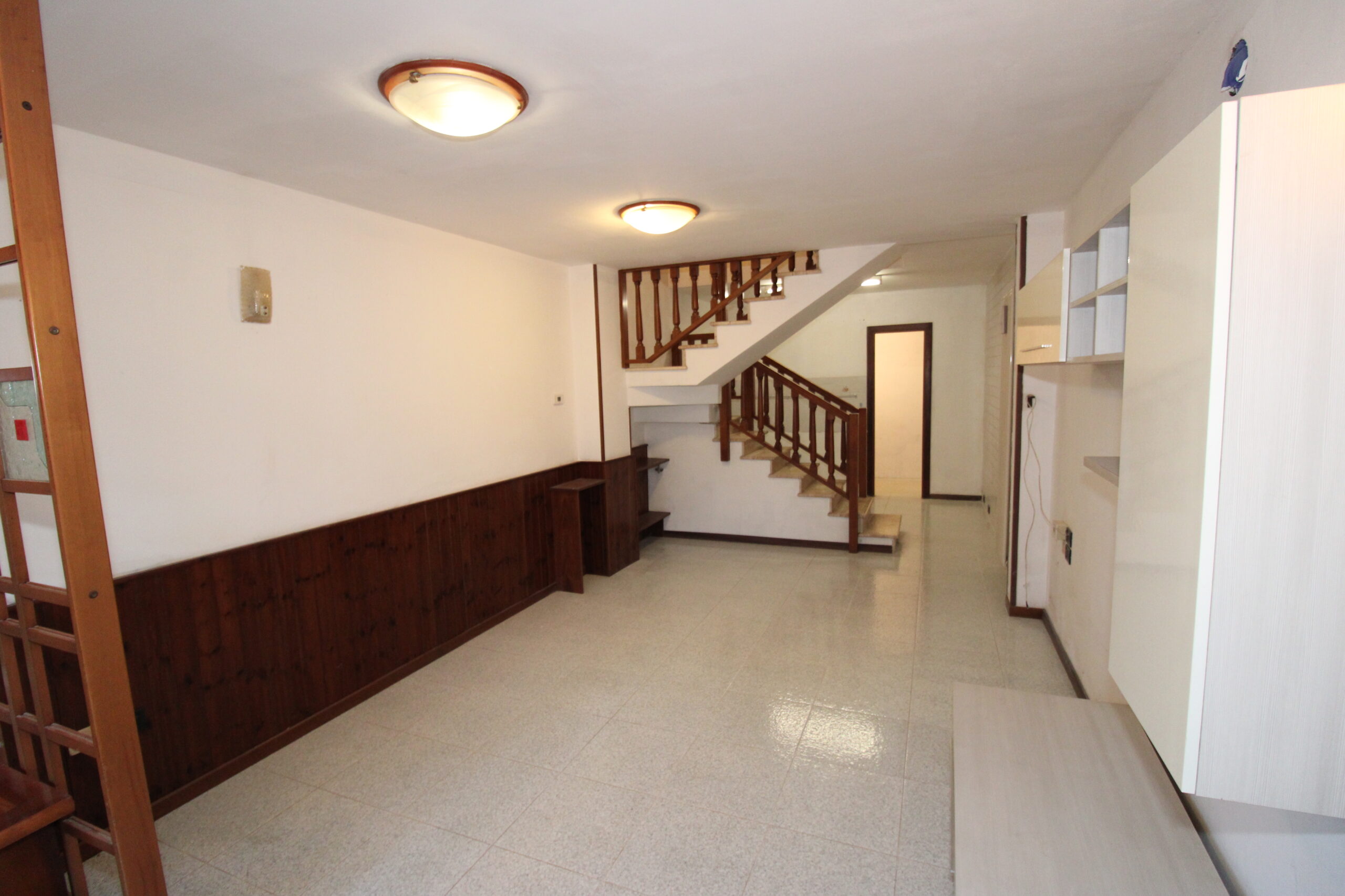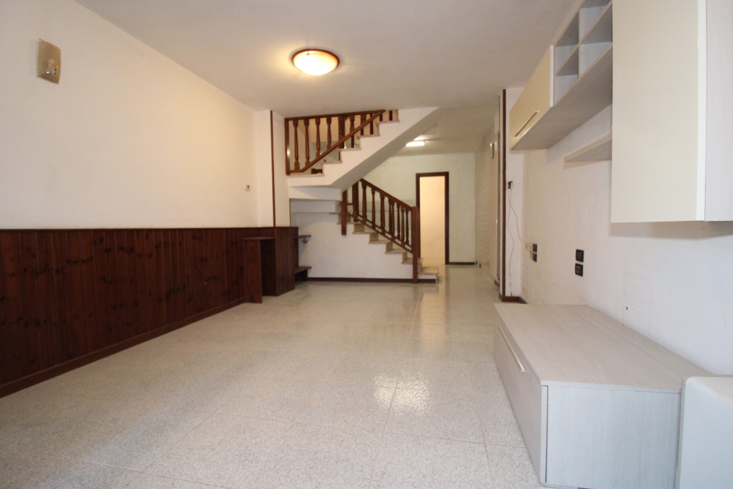 Al piano terra troviamo l’ampia zona living. Salendo le scale si accede al piano primo dove si sviluppa la camera matrimoniale, un servizio e un ripostiglio/lavanderia.