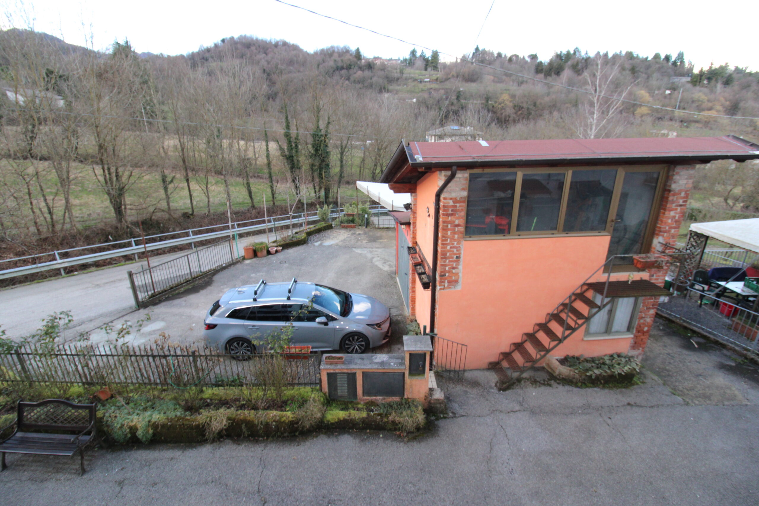 Completa la soluzione, la corte esclusiva fronte casa con una piccola area adibita a giardino, dove è collocato un secondo stabile con garage e ripostiglio.