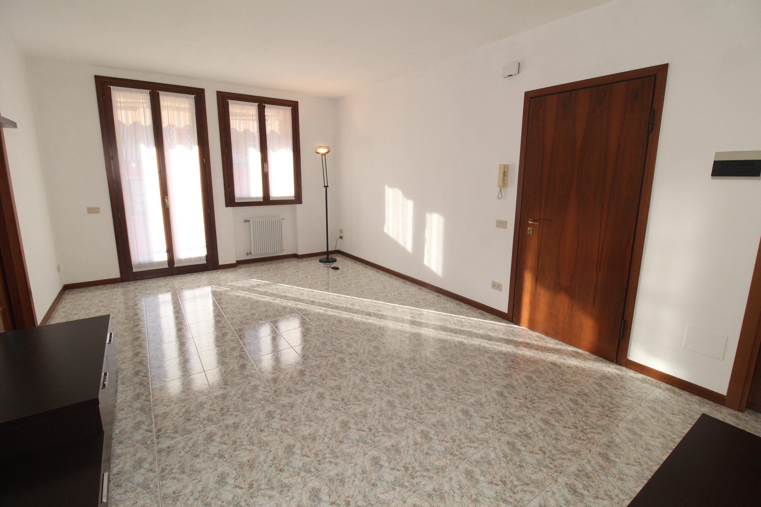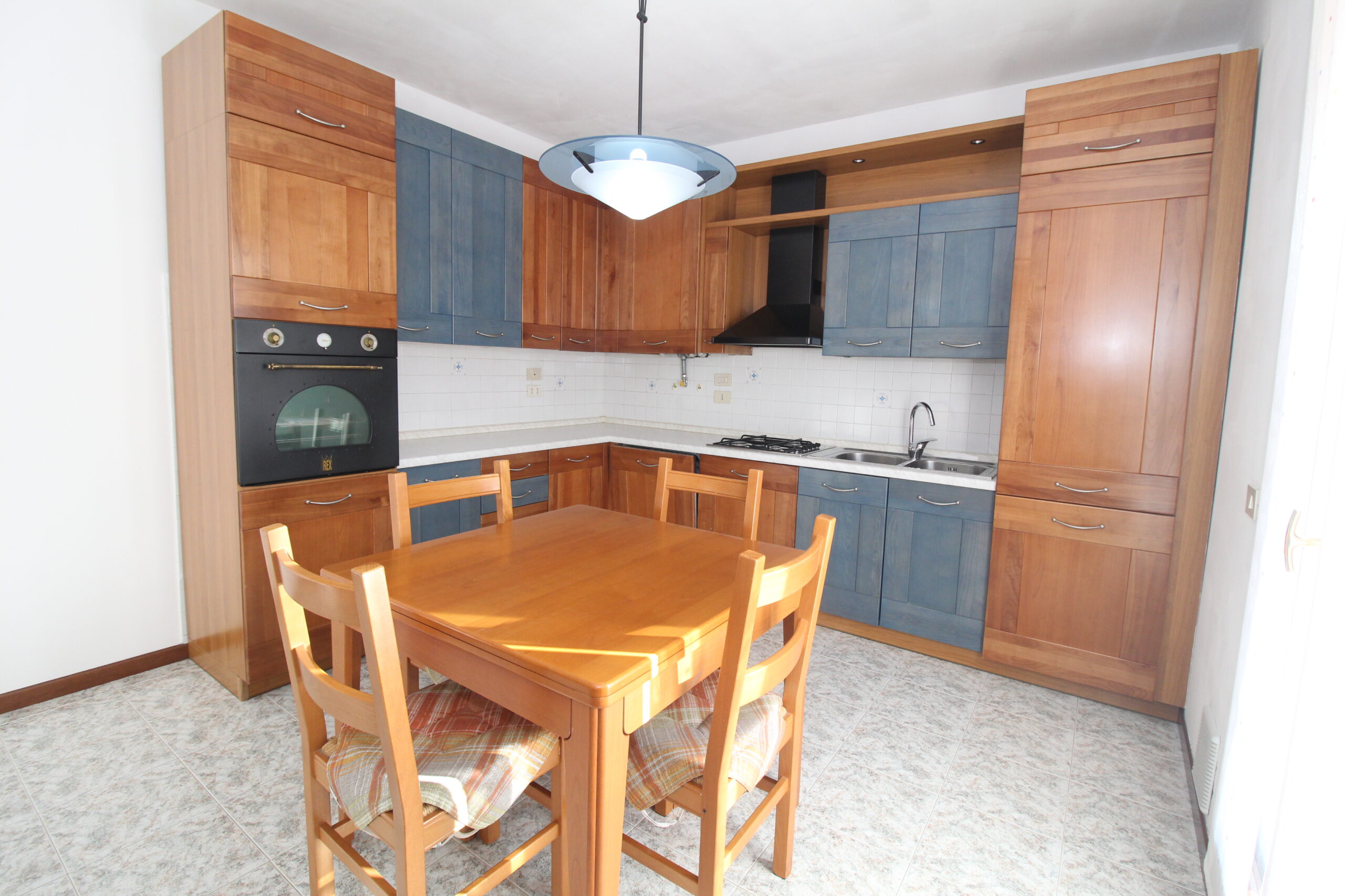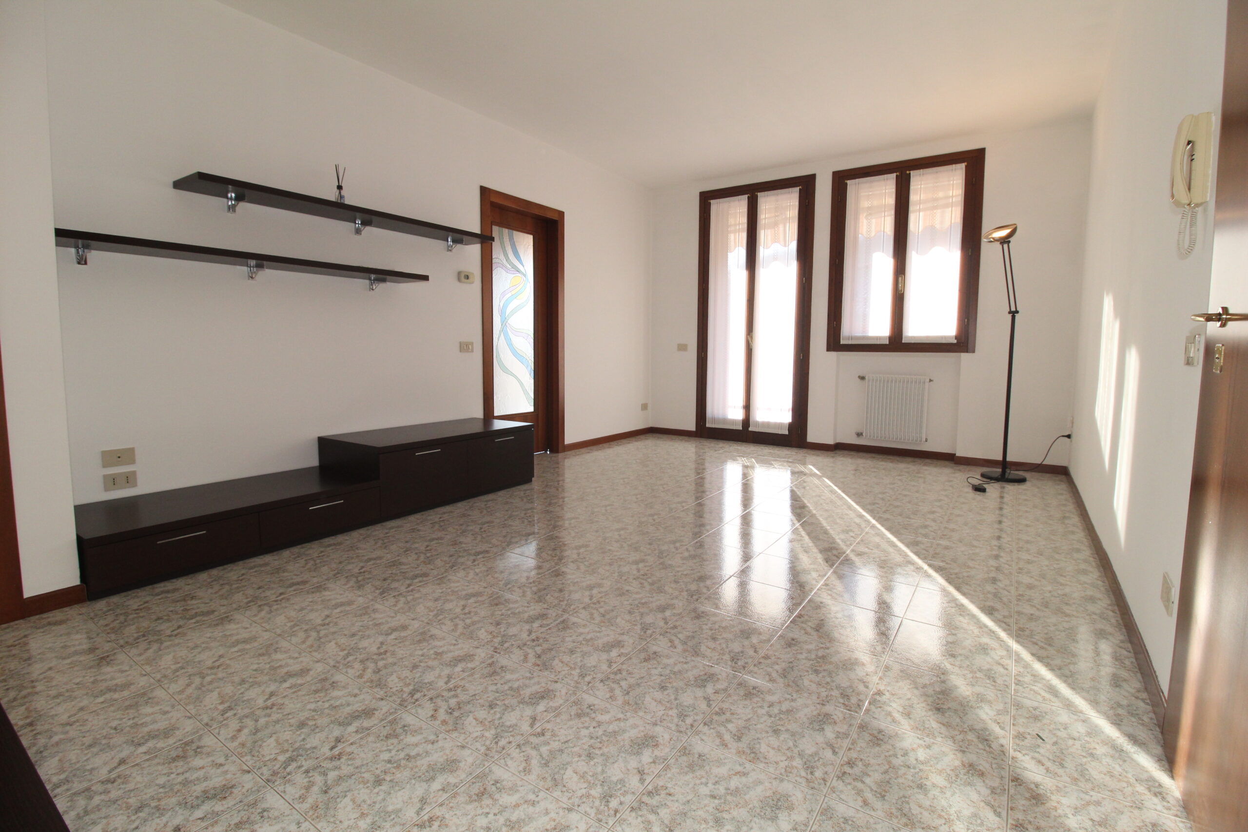 Un luminoso soggiorno e la funzionale cucina separata compongono la zona living di questo immobile, entrambe la stanze si affacciano al terrazzo dotato di tenda da sole.